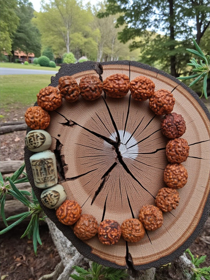 🌿 Product Description: 5 Mukhi Rudraksha & Radha Tulsi Beads Bracelet
